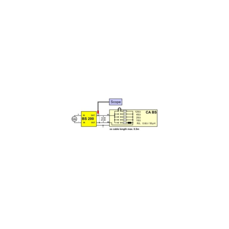 Additionally, the CA BS 200N includes a number of shunt resistors Rs such as 10ohm, 20ohm, 40ohm and 120ohm being required as per standards used during the emission measurement of transients as per ISO 7637-2:2011 and the former ISO 7637-2:2004.