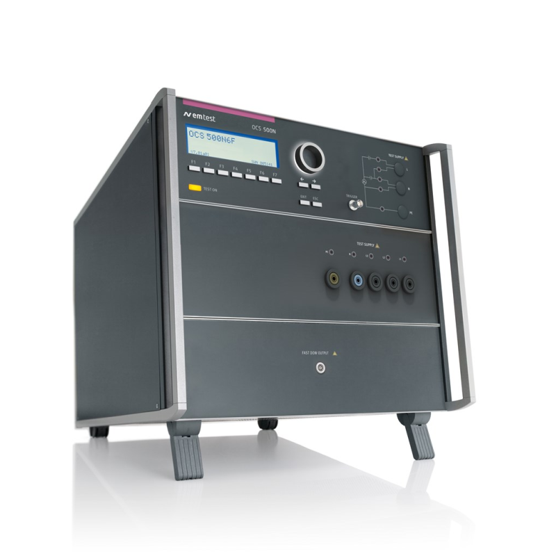 The OCS 500N6F series includes the test capabilities for fast damped oscillatory waves at 3 MHz, 10 MHz and 30 MHz up to 4.4kV and is extendable for slow damped oscillatory waves at 100 kHz / 1 MHz up to 3.0 kV (as per EN/IEC 61000-4-18) and for ringwave up to 6 kV as per EN/IEC 61000-4-12.