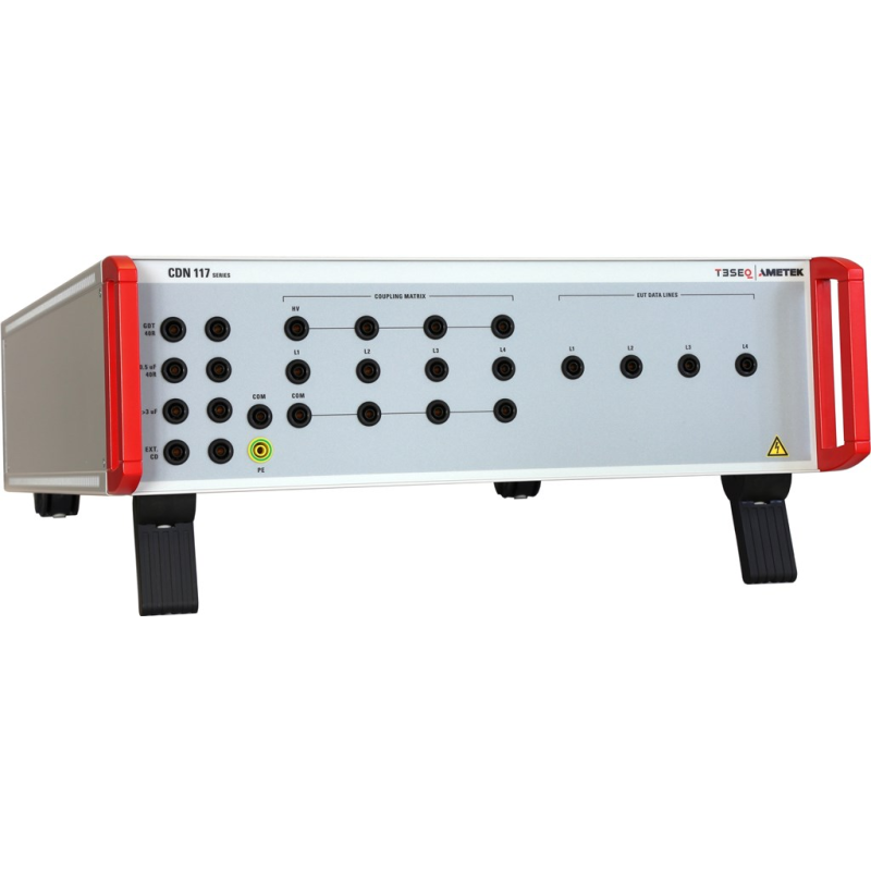 Teseq’s CDN 117A series coupling-decoupling network enables convenient testing with surge pulses of 1.2 / 50 μs and ring wave impulses 0.5 μs / 100 kHz on data, signal or peripheral lines, as specified in many product standards. The test method, severity levels, permissible reaction of the EUT and specification of the coupling networks are included in IEC 61000-4-5 Ed.3 Chapter 6.3.3.2.
