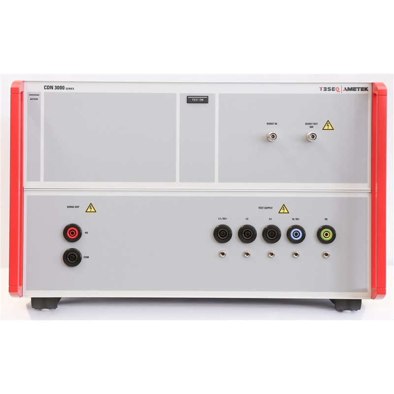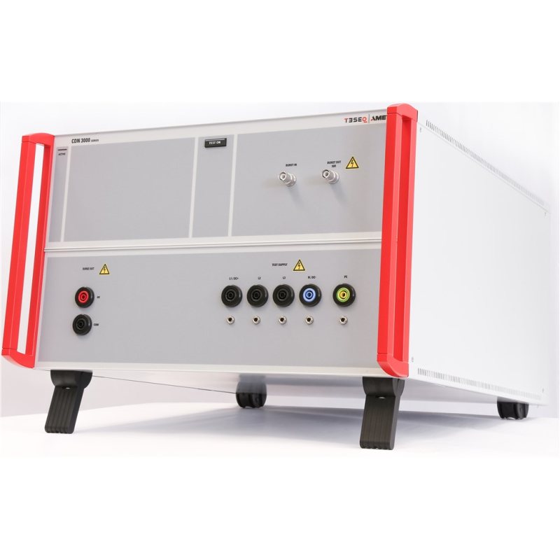 The CDN 30x3A series are 3 phase coupling/decoupling networks designed to offer best price performance for use as extension to NSG 30x0A multifunction generator series. With the CDN 3043A, the 1-phase NSG 3040A is enhanced to a cost-effective test system to cover anyone’s need for best budget. The coupler is characterized by a high level of user comfort and common safety functions. All coupling status are clear indicated on the display of the NSG 30x0A generator. The fully automated and IEC compliant coupling networks fulfill the requirements for EUT currents up to 100 A in the surge standard IEC / EN 61000-4-5, as well as the EFT / Burst impulses as per IEC / EN 61000-4-4 (latest edition for both standards).