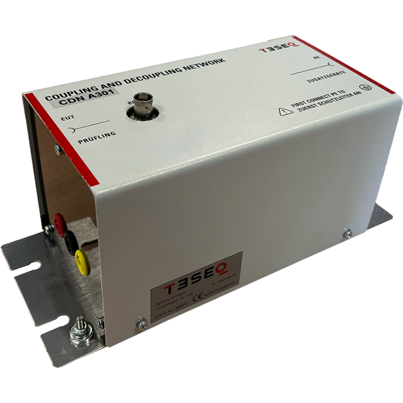 The presented CDN AF series is used to Inject common mode disturbance signal into unscreened and unbalanced control lines with low currents and a maximum of four lines in the frequency range from 150 kHz to 230 MHz.