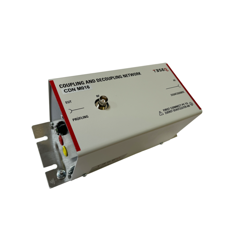 IEC/EN 61000-4-6 specifies the design and performance of a range of coupling/decoupling networks (CDNs). Each CDN is specific to the type of cable and the intended signal carried on the cable. The CDN M series is used to inject the RF disturbance on the main line (supply). Teseq offers a solution for two line and three line that can be configured using switch. The presented CDN M0 has a maximum current of 16 A and operating frequency starts from 150 kHz to 230 MHz. Teseq CDN M0 complies fully with the requirements of the standard and provide a simple, reliable and safe method of injecting RF energy into the equipment under test (EUT).