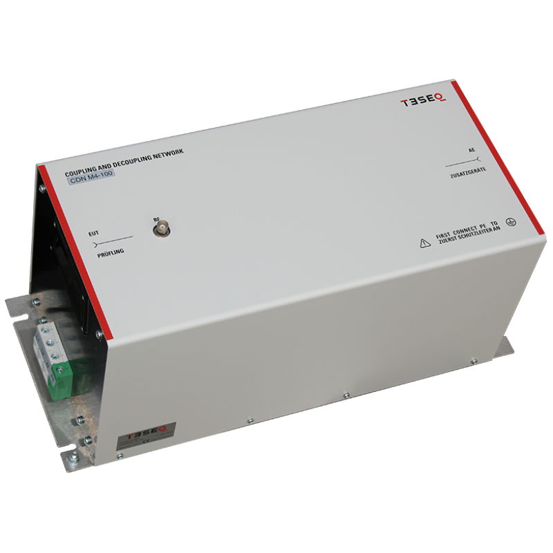 IEC/EN 61000-4-6 specifies the design and performance of a range of coupling/decoupling networks (CDNs). Each CDN is specific to the type of cable and the intended signal carried on the cable. The CDN M series is used to inject the RF disturbance on the main line (supply). Teseq offers an extensive range of CDN M4 series for four line applications and vast number of configuration. The presented CDN M4 series have a maximum current of 16 A and operating frequency starts from 150 kHz to 230 MHz. Teseq CDN M4 series comply fully with the requirements of the standard and provide a simple, reliable and safe method of injecting RF energy into the equipment under test (EUT).