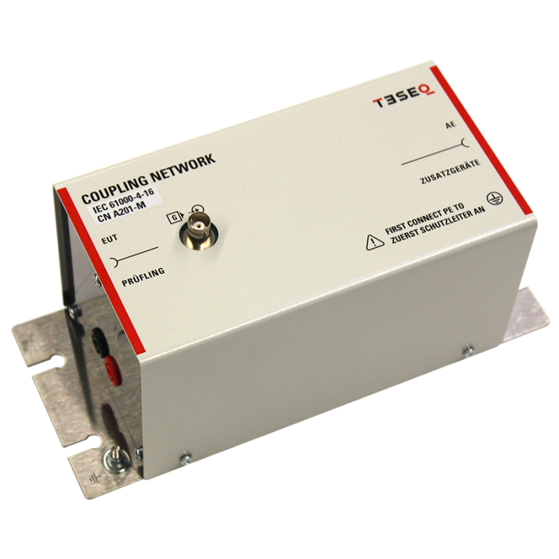CN Type A is a versatile coupling network that allows manual switching between AC and DC configurations, enabling the injection of RF test voltage in common mode to the signal and control ports of the EUT. Covering the frequency range from 0 Hz to 150 kHz, it simulates electromagnetic interference (EMI) conditions in both AC and DC environments. In compliance with IEC/EN 61000-4-16, this coupling network ensures a reliable and comprehensive method for testing the immunity of devices with input/output and control lines. An additional decoupling transformer is required to protect auxiliary equipment from the test voltage. With its manual switching capability, CN Type A is ideal for testing devices that operate in both AC and DC systems, providing flexibility and ensuring consistent performance under varied EMI conditions.