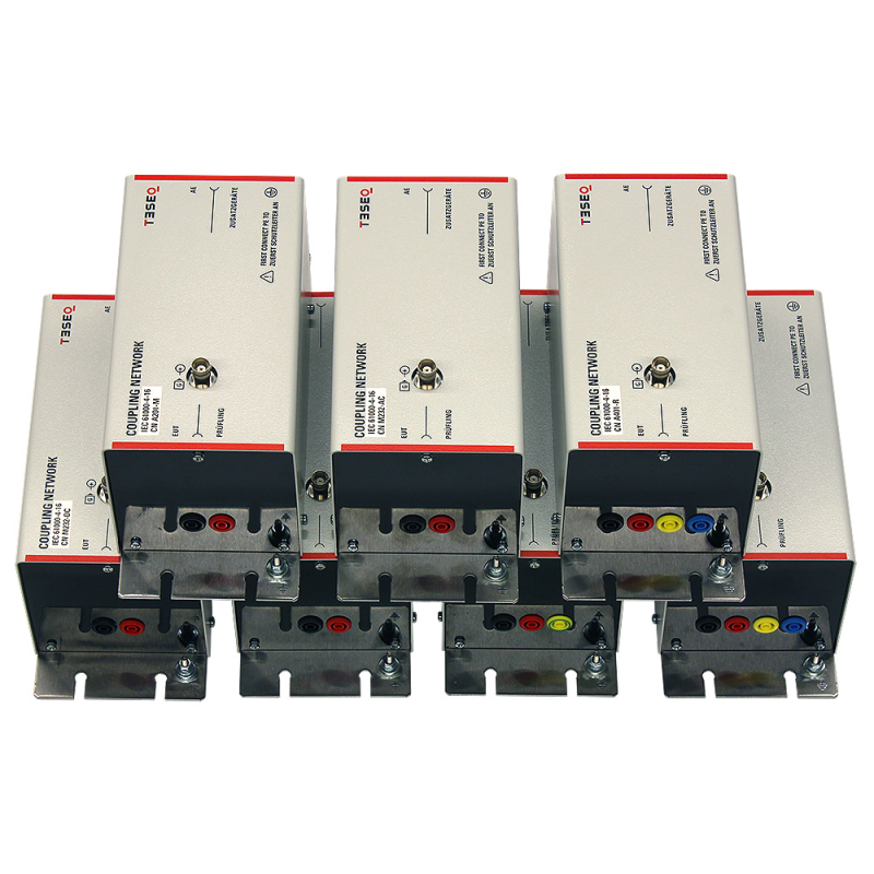 The CN Type M coupling network enables the application of RF test voltage to the power supply lines of 4 and 5 lines of the EUT in common mode, ensuring that the device can withstand conducted disturbances in the 0 Hz to 150 kHz frequency range. In accordance with IEC/EN 61000-4-16, CN Type M provides a reliable method for testing the robustness of power supplies exposed to electromagnetic interference. An additional decoupling transformer is required to protect auxiliary equipment from the test voltage. This configuration ensures that the power supply of the EUT is thoroughly tested, while auxiliary components remain unaffected.