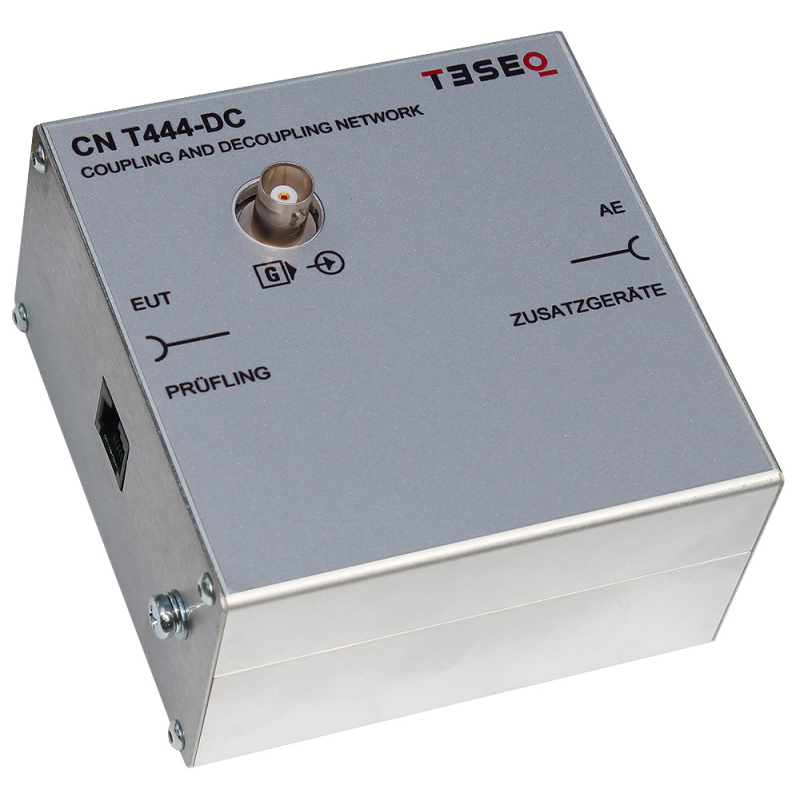 The CN Type T coupling network is used to inject RF disturbances into telecommunication lines of the EUT, simulating real-world conditions where communication lines of up to 2 pairs encounter electromagnetic interference. Operating across the 0 Hz to 150 kHz frequency range, CN Type T includes an integrated decoupling network that isolates the test voltage from auxiliary equipment, eliminating the need for an external decoupling transformer. As specified by IEC/EN 61000-4-16, CN Type T provides a complete solution for testing telecommunication devices, ensuring they maintain performance and data integrity when subjected to conducted disturbances.