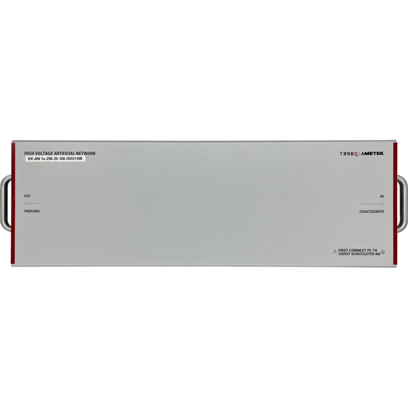 The HV-AN 1u-250 ISO 21498 are artificial networks used for emission mesasurements on electric vehicle high voltage components.The AN simulates the impedance of a vehicle harness and battery. It meets the requirements of ISO 21498-2, MBN 11123, BMW GS95023 and similar standards.