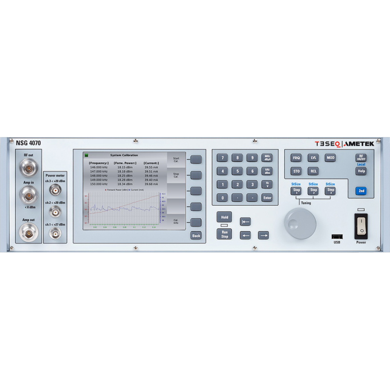 The wide frequency range of the signal generator and the power meter offer the possibility to connect external amplifiers and directional couplers. In combination with a remote control software, external power amplifiers and directional couplers, further applications can be covered, such as testing of conducted disturbances induced by high frequency fields according to IEC / EN 61000-4-6, automotive BCI tests e.g. according to ISO 11452-4 as well as high frequency electromagnetic fields according to IEC / EN 61000-4-3 or IEC / EN 61000-4-20.