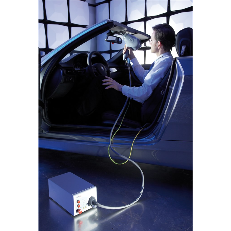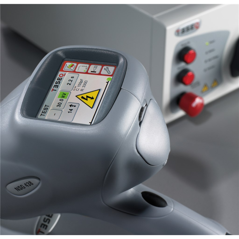 Ergonomic design and advanced functionality. The NSG 438 ESD simulator is designed to sit comfortably in the operator’s hand, with operating conditions constantly displayed and accessible on a bright, clear color touch display.