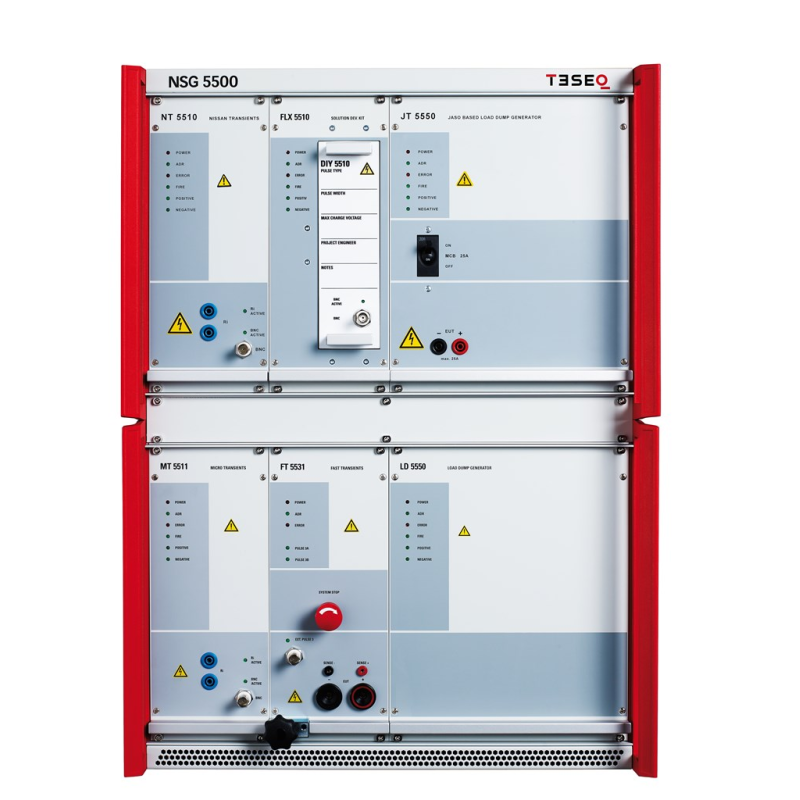 The compact and modular NSG 5500 solution offers the generators necessary for tests with capacitive discharge pulsed interference as called for by ISO, SAE, DIN and JASO, and others. The established test specifications for passenger cars together with the new standards for commercial vehicles published by these international and other bodies are fully covered, as are the most company-specific standards from vehicle manufacturers. Based on our exclusive Gemini technology, Teseq offers the most flexible and upgradeable system to protect the users’ investment.