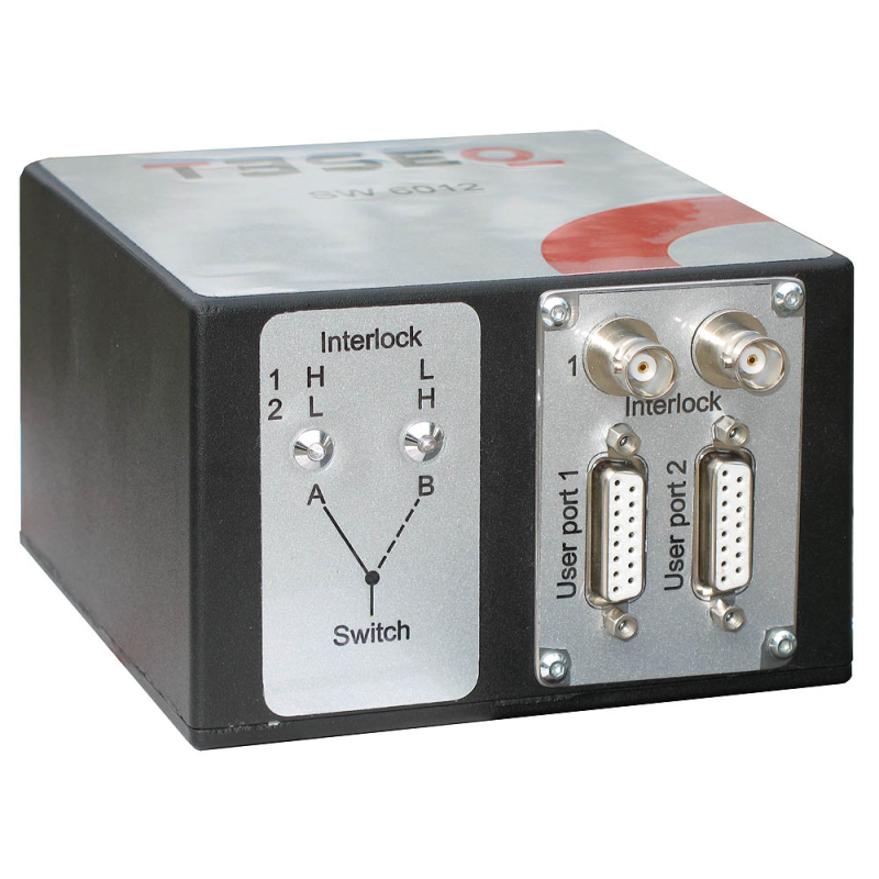 The SW 6012 adds two SPDT switches to the built-in switching network of the ITS 6006. It is fully powered and controlled by the ITS 6006. Interlock connections are provided for switching the amplifier gain on/off. Additionally the SW 6012 is supplied with a second user port socket for various applications. The SW 6012 can be controlled by the NSG 4070B (NSG 4070 and NSG 4070A require SW 4070.).