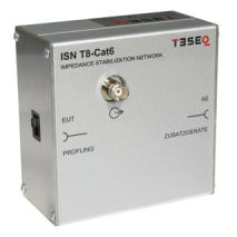 The ISN T2 is designed for measurements on one unscreened balanced pair for cable cat. 3 and cat. 5. A set of adapters consists of LCL adapters to realize the longitudinal conversion loss (LCL)- requirements for the EUT-side in relation to the used cable category (cat. 3, cat. 5) and a connection adapter for the AE-side.